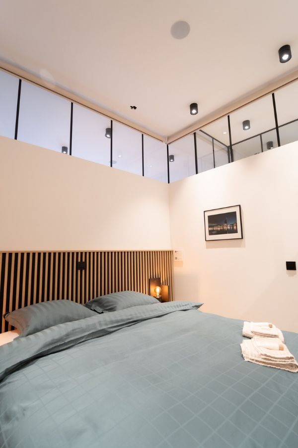 Installé dans une ancienne filature de laine, ce logement insolite plonge ses visiteurs dans un décor où l’histoire industrielle rencontre la modernité architecturale.